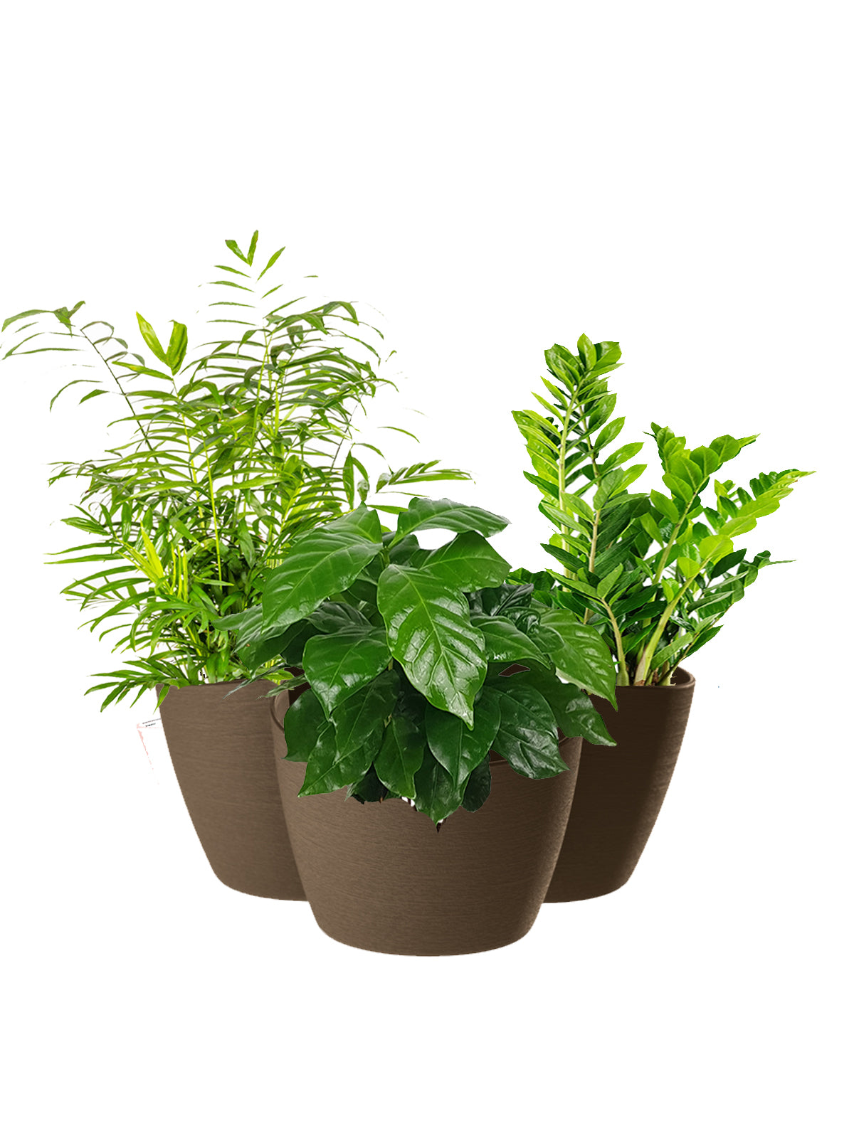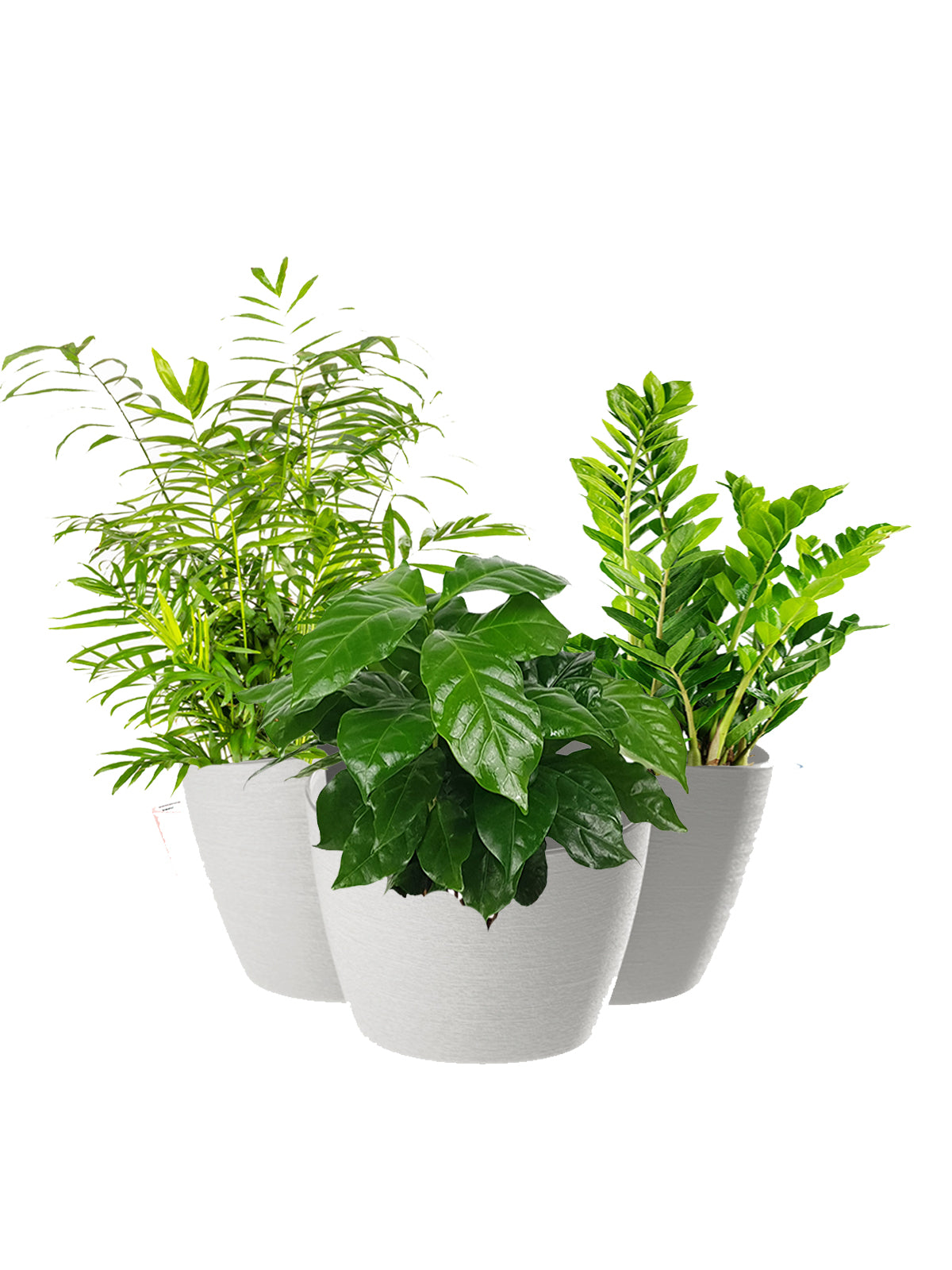 Indoor plants in composition in design pots in different colors of your choice. Various plant creations to amaze with beauty and originality.