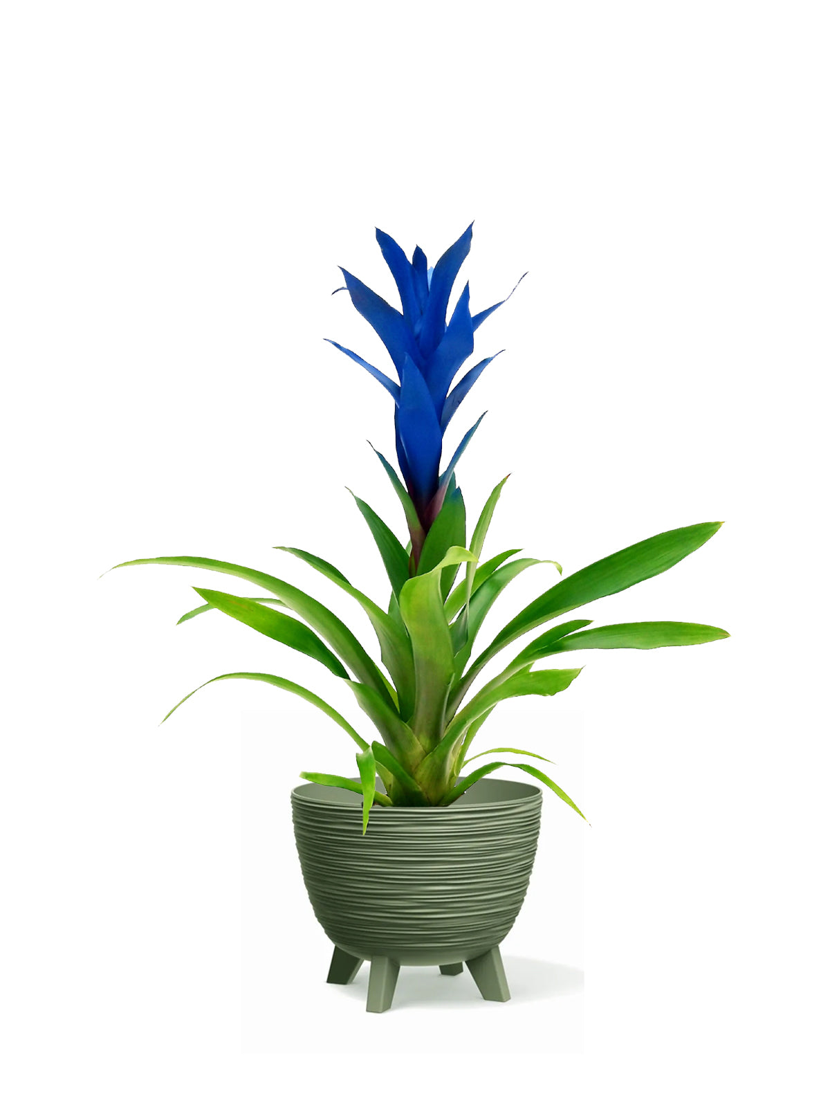 Pianta viva di Guzmania blu di dimensione grande. La Guzmania è la pianta ideale per dare il benvenuto e omaggiare le persone dai gusti più sofisticati. Il suo ricco fogliame e il fiore dal colore intenso sono un simbolo di bellezza che dura nel tempo, in questo caso sarà in un'originalissima veste blu!